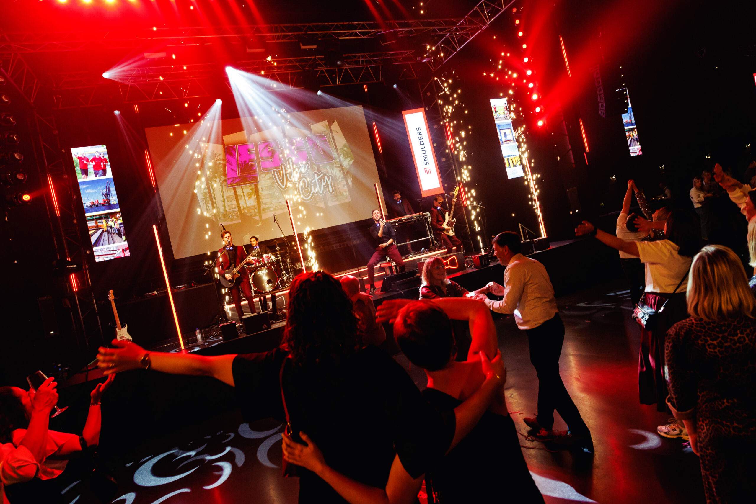 Voor Smulders mochten we een groots corporate event realiseren in AED Studios in Lint, waar meer dan 750 medewerkers samenkwamen voor een avond die zowel informeel als impactvol mocht aanvoelen. Jetset Events nam de volledige coördinatie op zich: van ontvangstflow tot showmanagement.